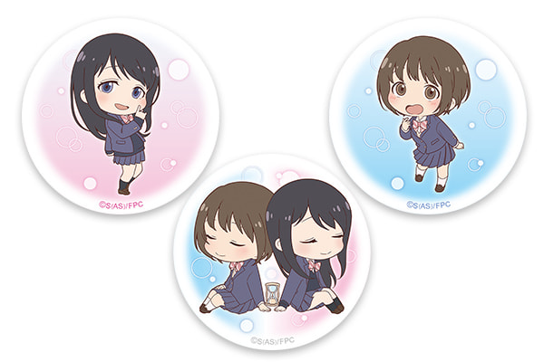 森谷・村上・森谷&村上のSDイラストを使用した可愛らしい3個セットの缶バッチ。