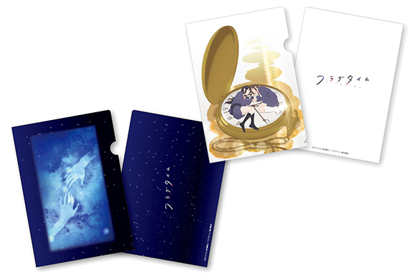 懐中時計の上で、ふたりだけの特別な時間を過ごす森谷と村上が描かれた描き下ろしイラストと、本編のオープニングアートを使用したクリアファイル2種セット。